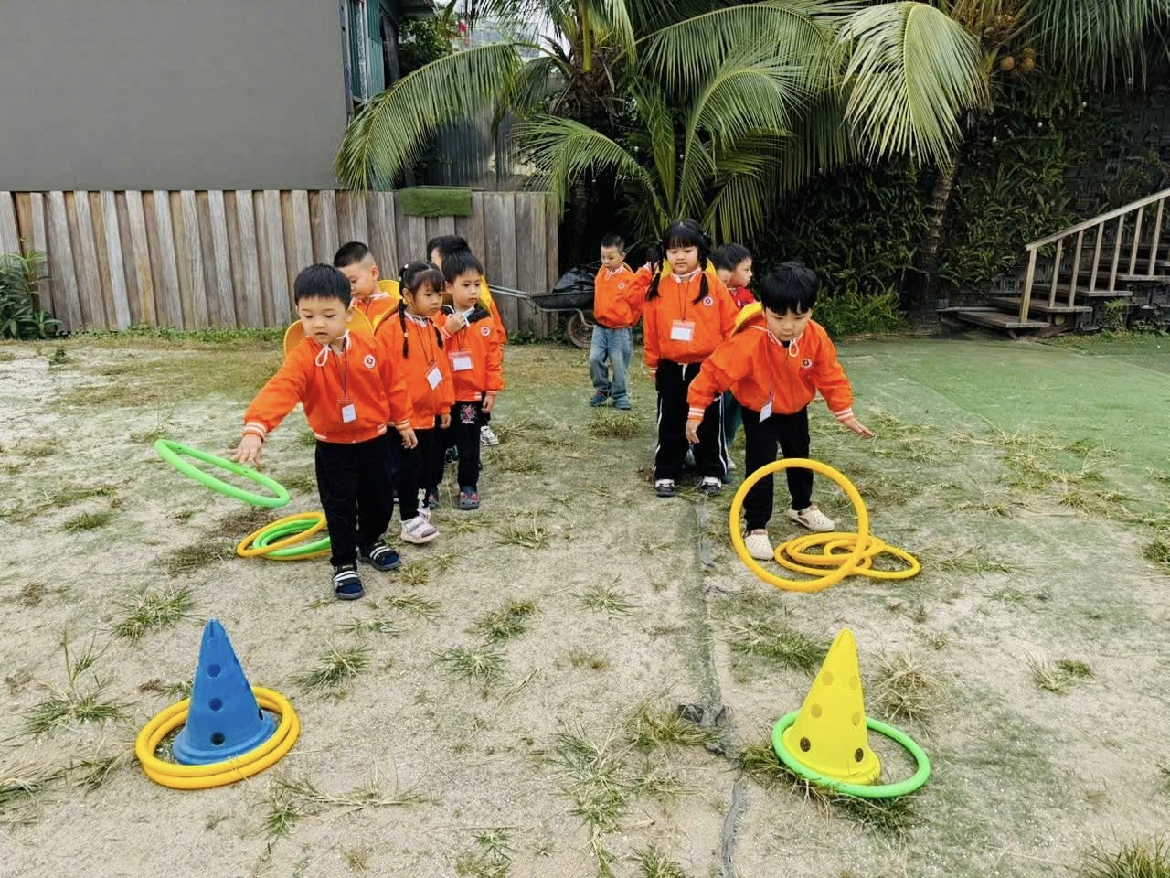 Tiếng cười lại vang lên rộn rã hơn khi các bé bước vào phần trò chơi vận động: