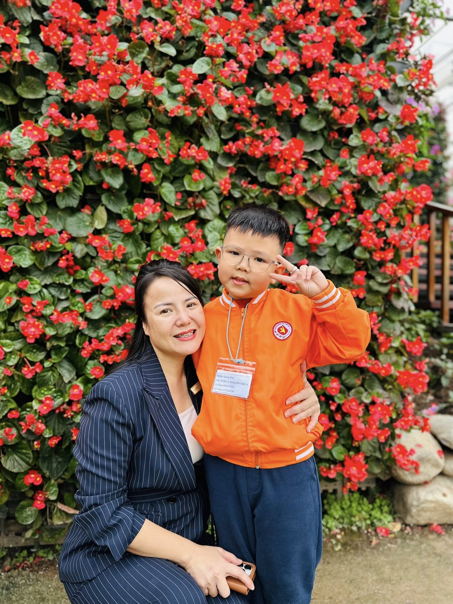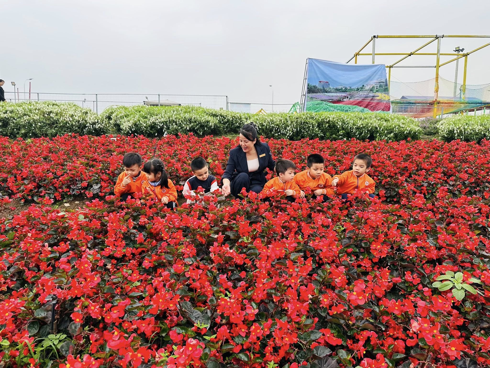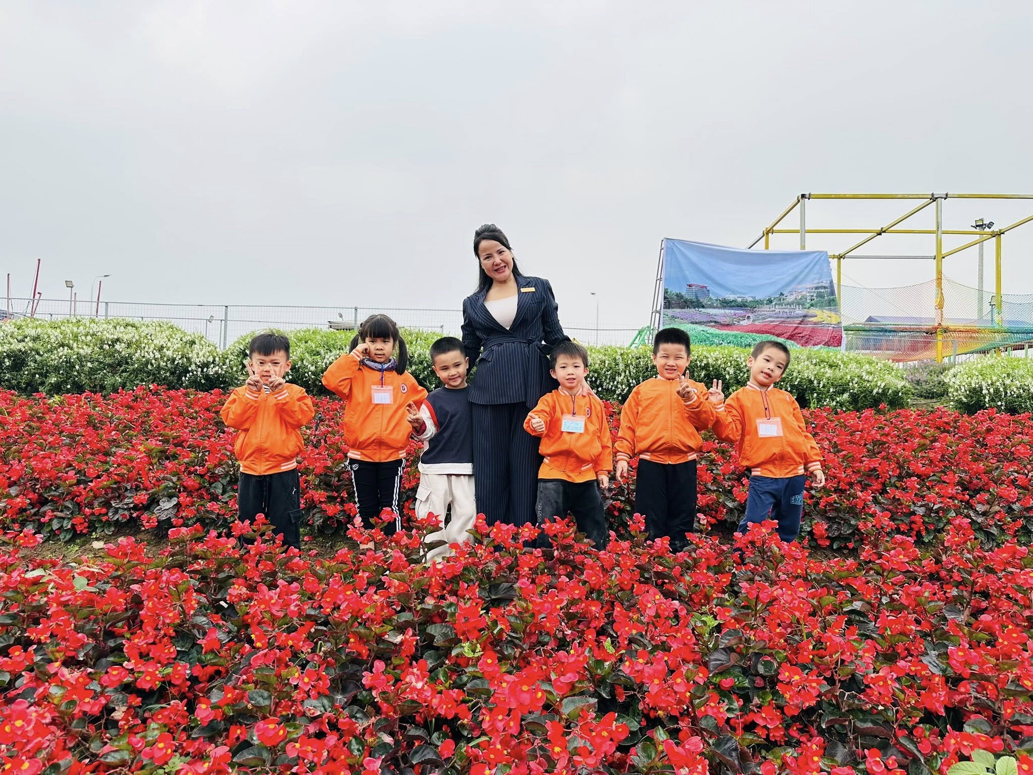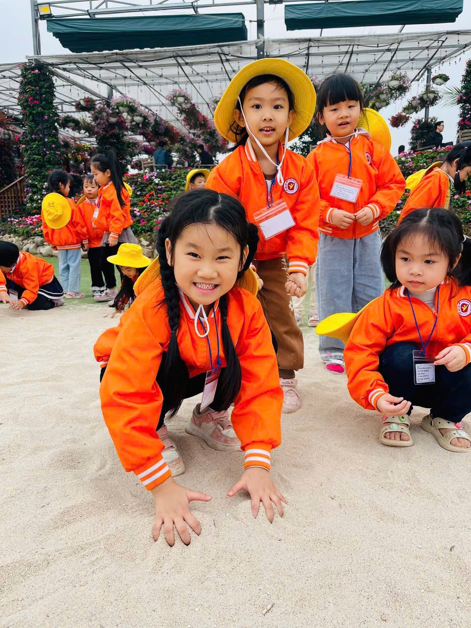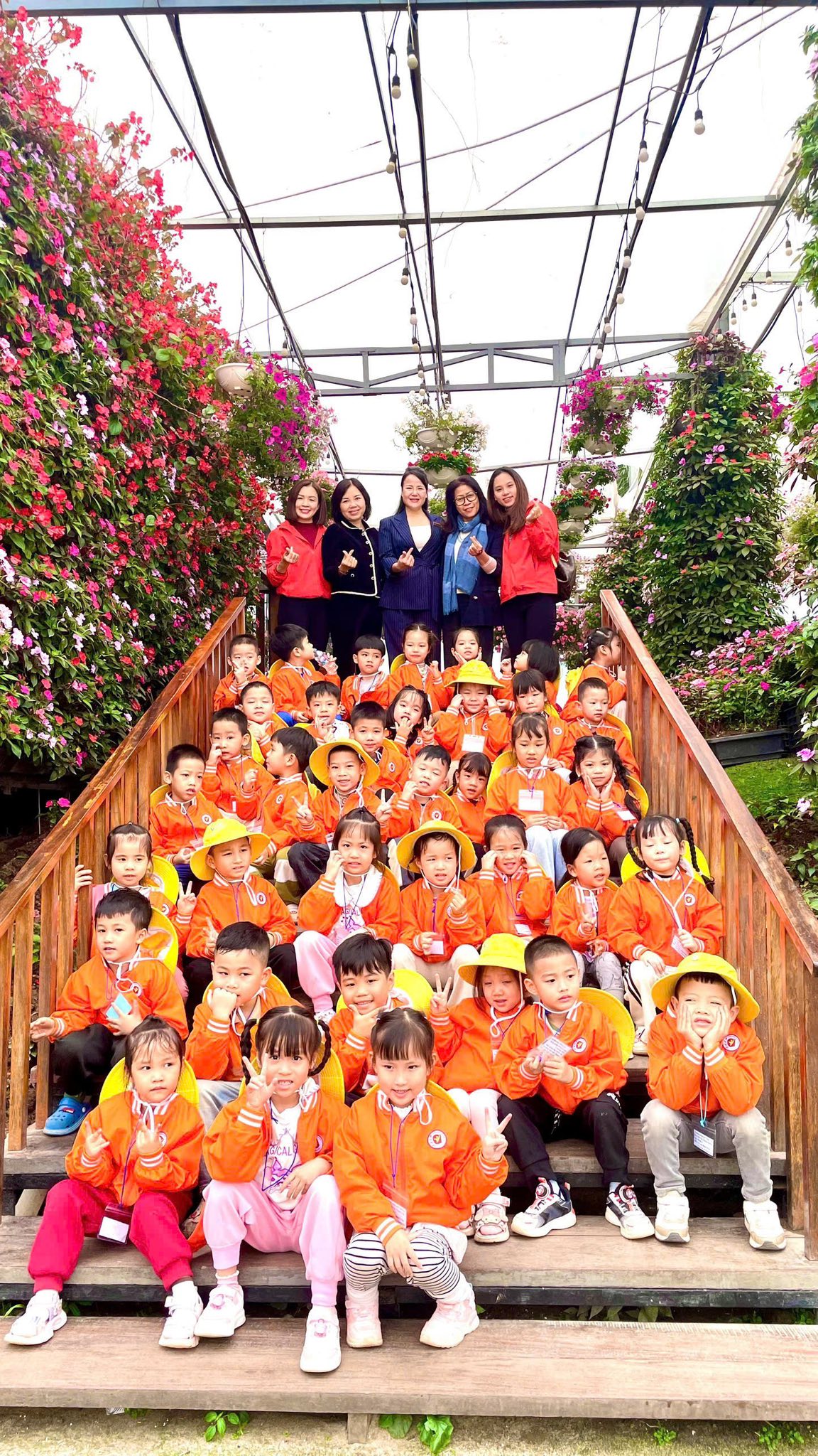 Vừa đặt chân tới nơi, các con đã “ồ” lên thích thú trước vườn hoa rực rỡ sắc màu: hoa vàng, hoa tím, hoa hồng xinh xắn… bé nào cũng trầm trồ, mắt sáng long lanh như lạc vào khu vườn cổ tích