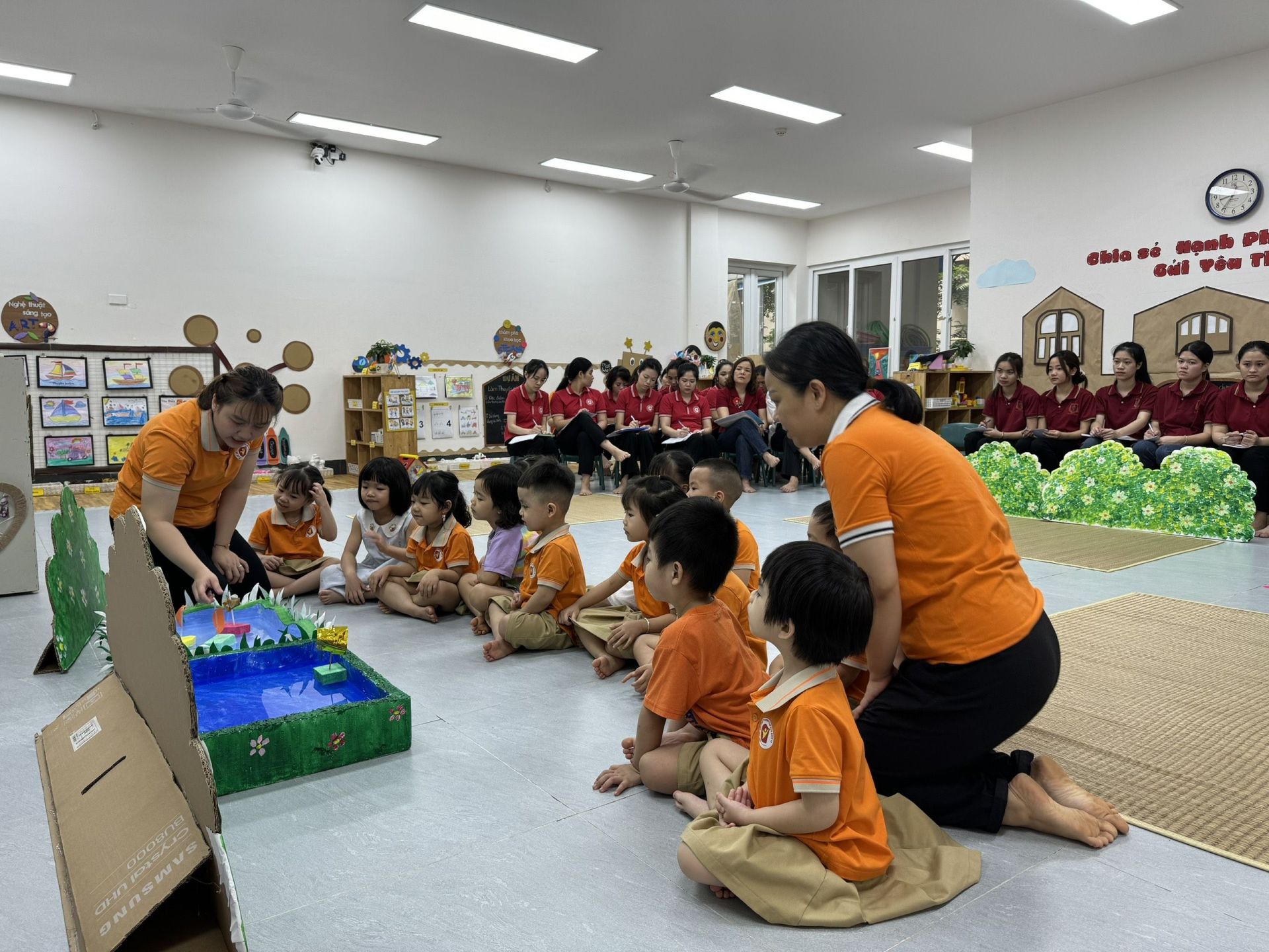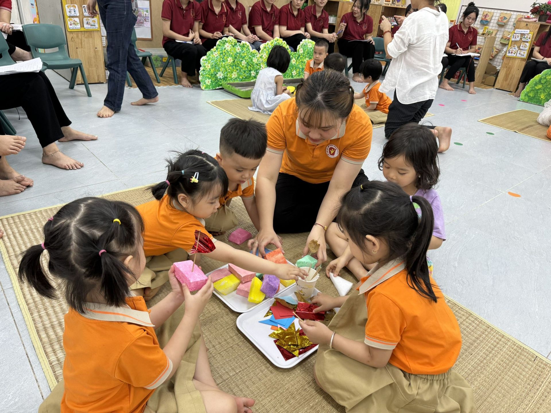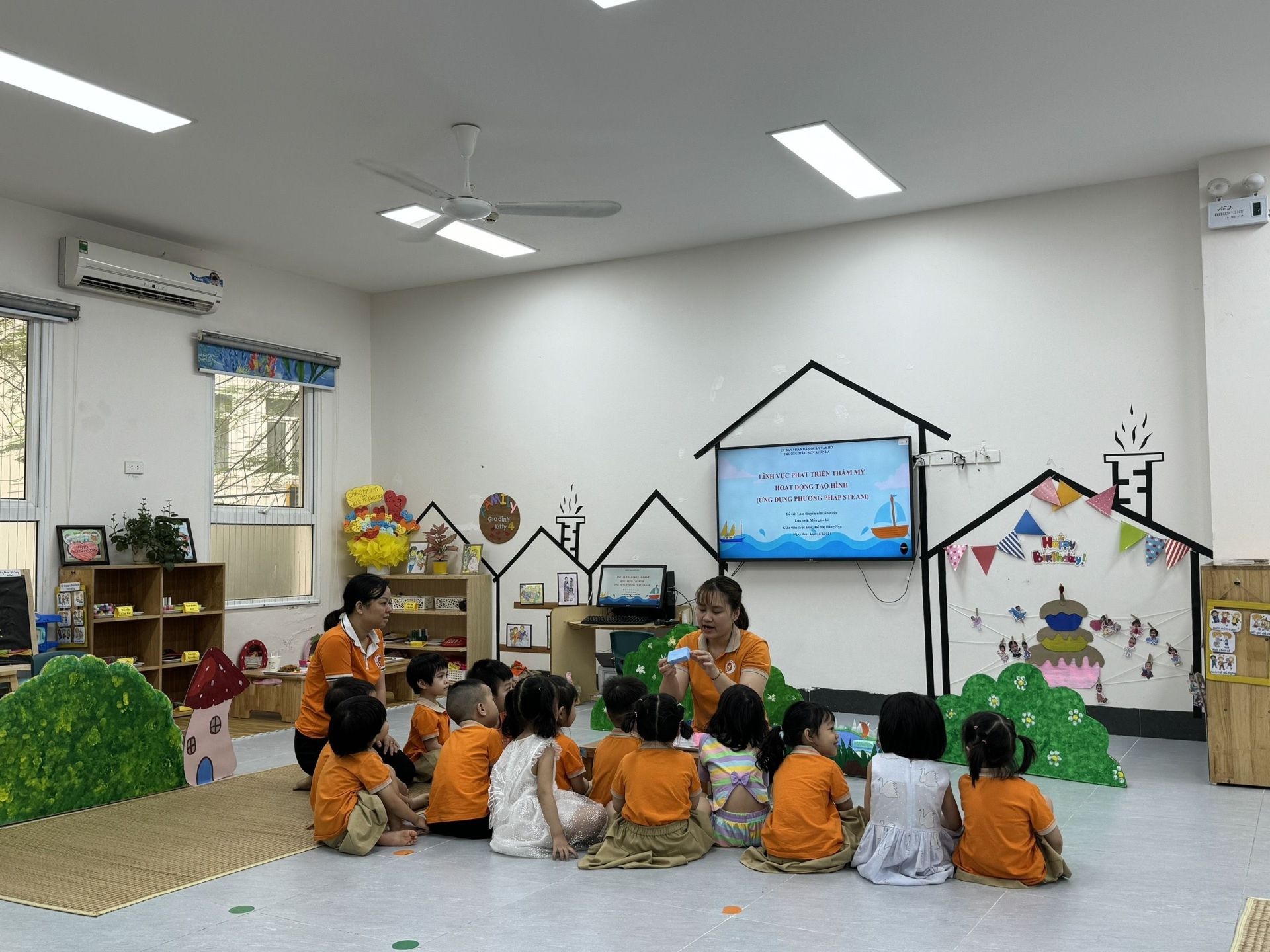 Ngày 04/04/2024, giáo viên Đỗ Thị Hằng Nga đã thực dạy tiết học ứng dụng phương pháp STEAM ở lớp Kitty4 lĩnh vực phát triển thẩm mỹ - Tạo hình “Làm thuyền nổi trên nước”. Hoạt động này góp phần nâng cao năng lực và bồi dưỡng phương pháp dạy học theo định hướng phát triển năng lực và sự sáng tạo của trẻ.
