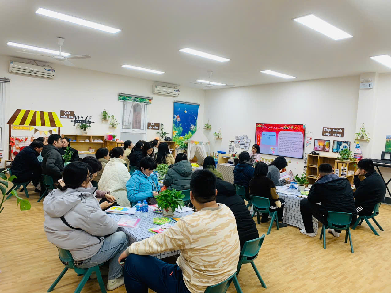 Buổi họp được tổ chức nghiêm túc, đúng kế hoạch và đạt hiệu quả thiết thực. Giáo viên các lớp đã thông tin đầy đủ tới phụ huynh về kết quả chăm sóc, nuôi dưỡng và giáo dục trẻ trong học kỳ I; đồng thời trao đổi những nội dung trọng tâm, phương hướng, nhiệm vụ trong học kỳ II. Các ý kiến đóng góp, chia sẻ của phụ huynh được lắng nghe và ghi nhận, góp phần tăng cường sự phối hợp chặt chẽ giữa gia đình và nhà trường.