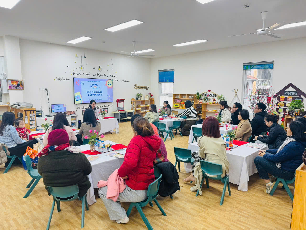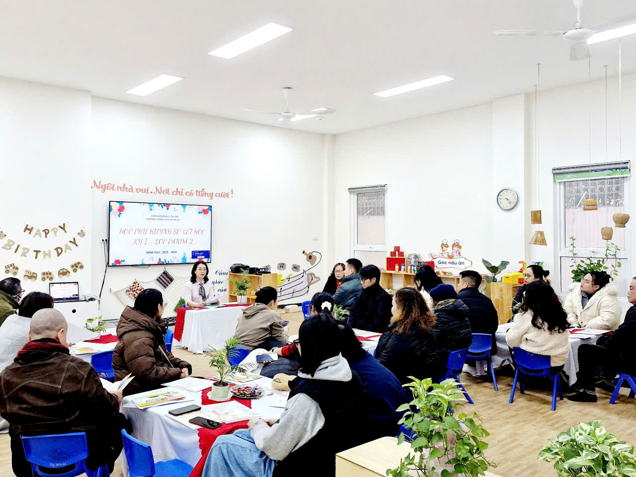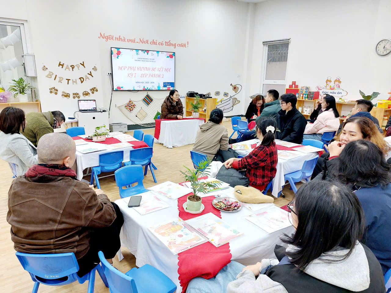 Nhà trường đã chỉ đạo các lớp chuẩn bị chu đáo về cơ sở vật chất, nội dung báo cáo cũng như công tác đón tiếp phụ huynh. Phòng học được sắp xếp gọn gàng, khoa học; tài liệu, hình ảnh minh họa rõ ràng, tạo không khí thân thiện, cởi mở ngay từ đầu buổi họp.