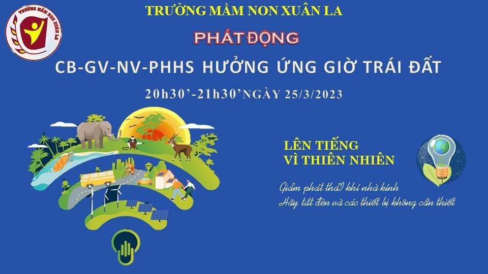 TRƯỜNG MN XUÂN LA PHÁT ĐỘNG CBGVNV- PHHS HƯỞNG ỨNG CHIẾN DỊCH GIỜ TRÁI ĐẤT