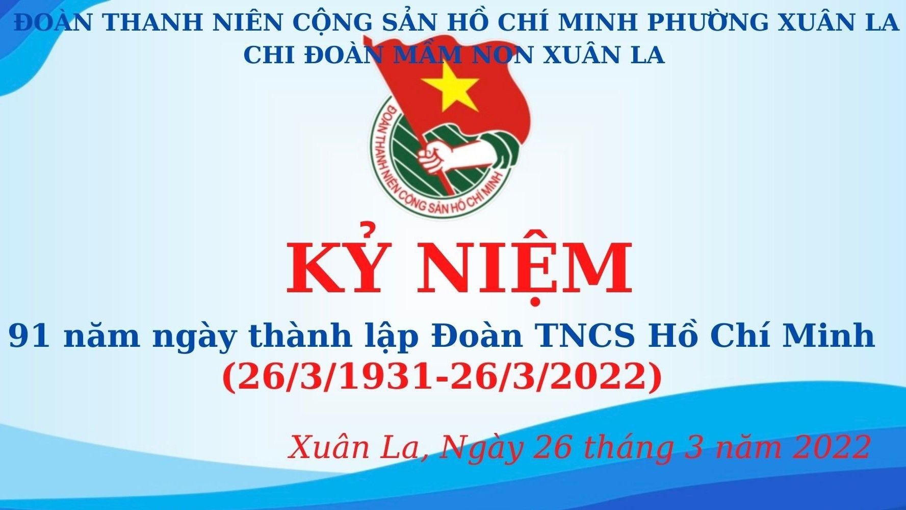 KỶ NIỆM 91 NĂM NGÀY THÀNH LẬP ĐOÀN TNCS HỒ CHÍ MINH 26/03/1931 - 26/03/2022 Ngày 26/3/2022, Chi đoàn Mầm non Xuân La đã tổ chức buổi kỉ niệm 91 năm ngày thành lập đoàn thanh niên cộng sản Hồ Chí Minh(26/03/1931 - 26/03/2022) Tham dự Hội