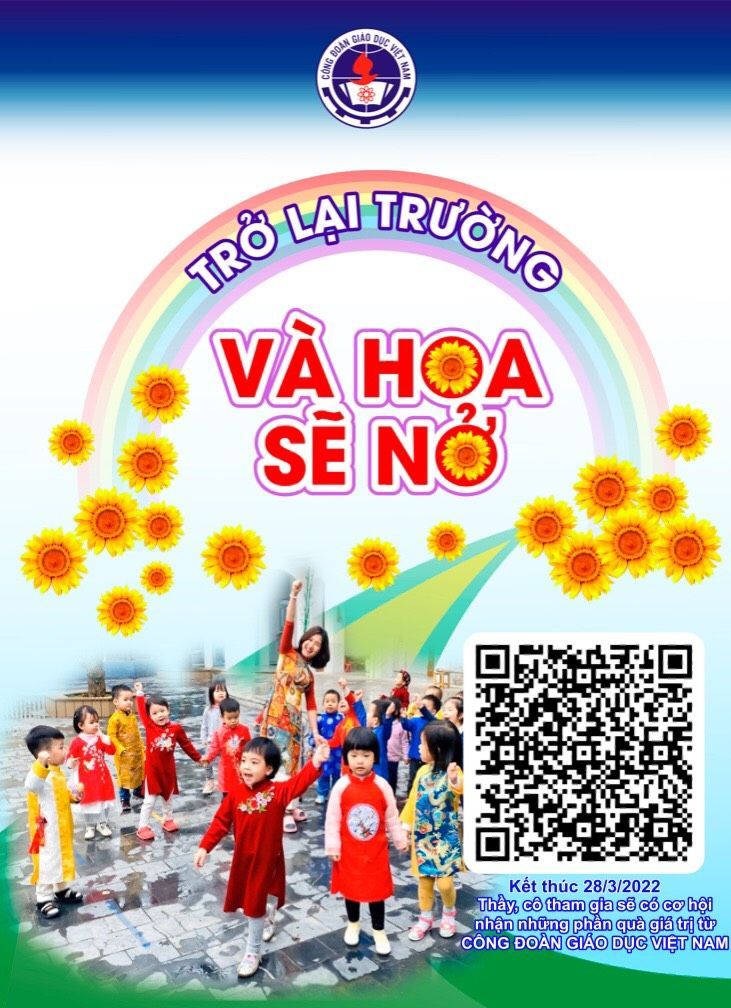 CBGVNV TRƯỜNG MẦM NON XUÂN LA VỚI CHƯƠNG TRÌNH “TRỞ LẠI TRƯỜNG VÀ HOA SẼ NỞ” Để nắm bắt được tâm tư, cảm xúc của giáo viên, kịp thời nhằm động viên giáo viên khi trở lại trường dạy học trực tiếp, CĐGD Việt Nam triển khai chương trình”Trở lại