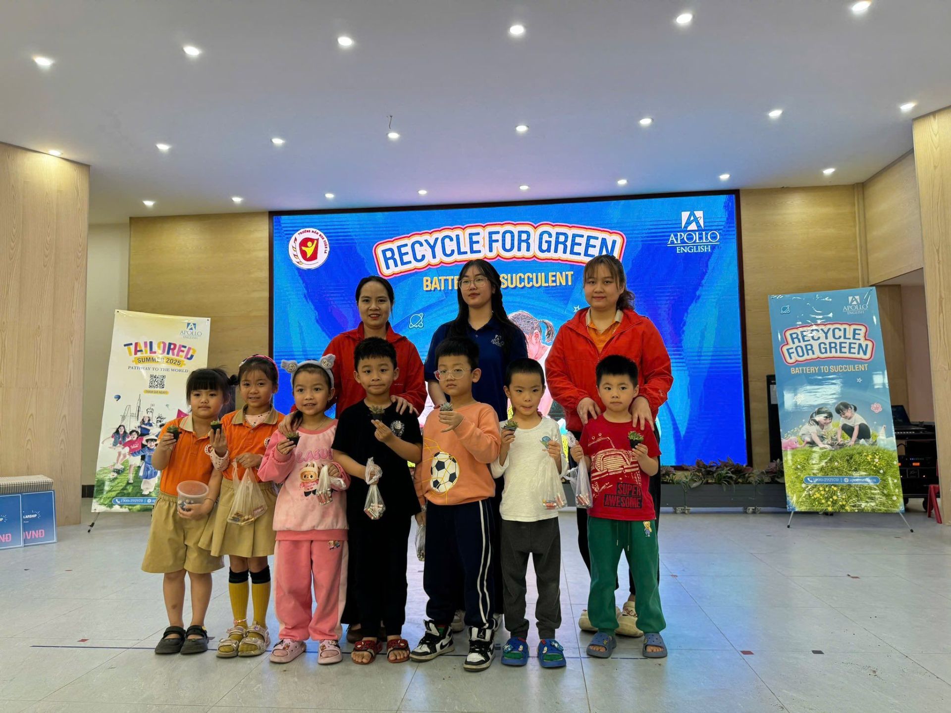 TRƯỜNG MẦM NON XUÂN LA PHỐI HỢP VỚI TRUNG TÂM TIẾNG ANH APOLLO TỔ CHỨC HOẠT ĐỘNG “THU GOM PIN – ĐỔI CÂY XANH” VÀ TRAO HỌC BỔNG APOLO CHO CÁC BÉ