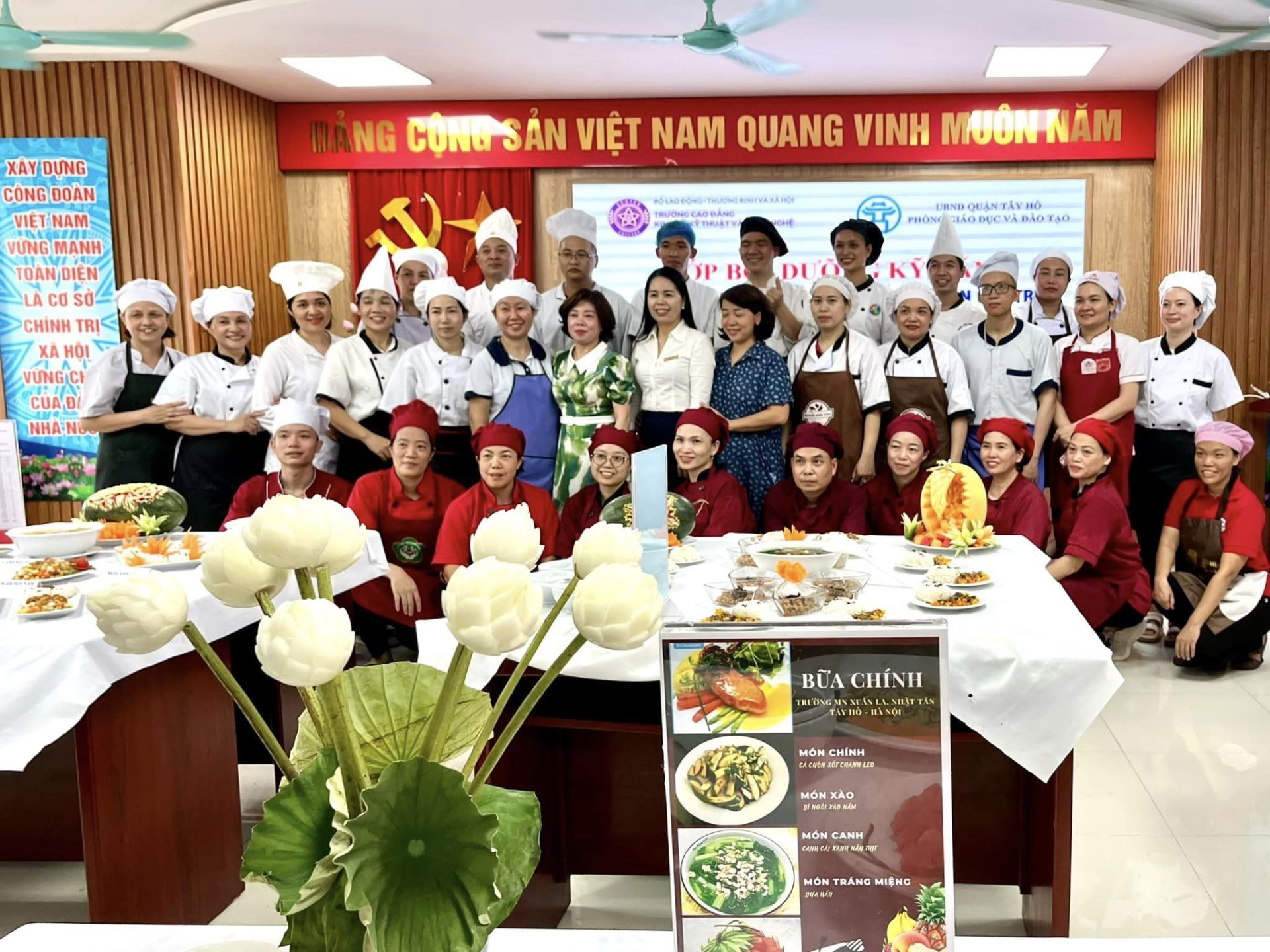 CÁN BỘ, NHÂN VIÊN TRƯỜNG MẦM NON XUÂN LA THAM GIA LỚP TẬP HUẤN, BỒI DƯỠNG KỸ NĂNG XÂY DỰNG THỰC ĐƠN VÀ CHẾ BIẾN MÓN ĂN CHO TRẺ DO PHÒNG GIÁO DỤC VÀ ĐÀO TẠO TỔ CHỨC.