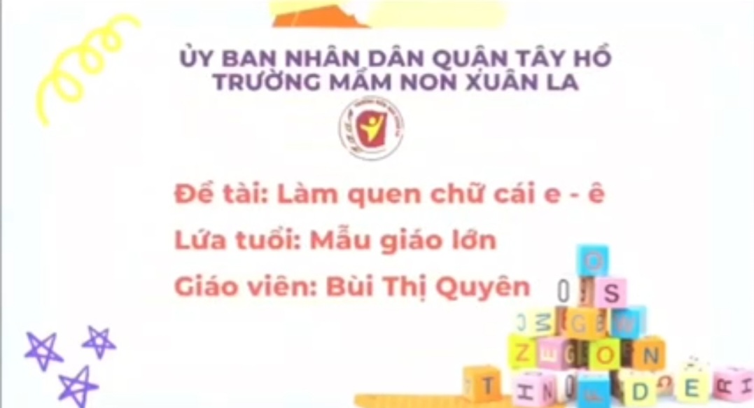 Làm quen chữ cái: Chữ e, ê - GV: Bùi Thị Quyên
