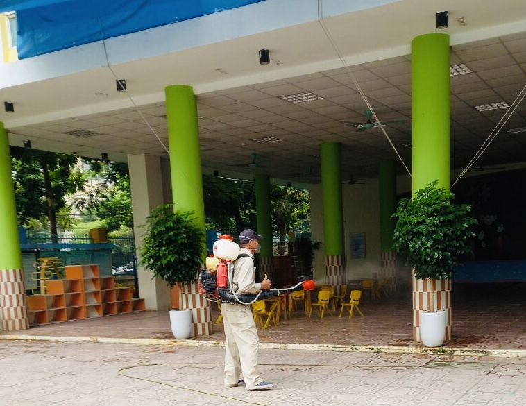 Trường mầm non Xuân La phun thuốc diệt muỗi phòng chống sốt xuất huyết